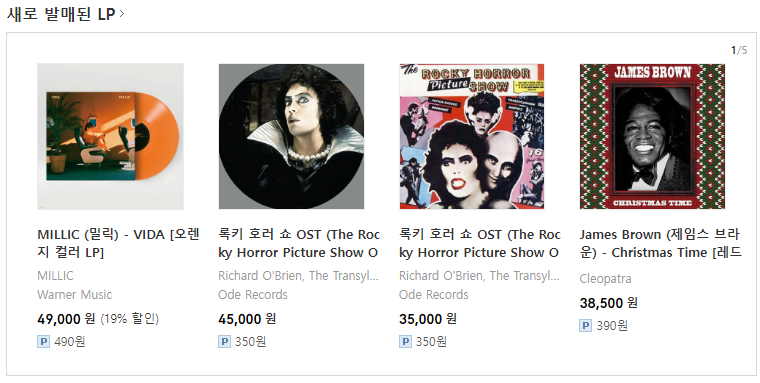 새로 발매된 LP 리스트를 보니, 대략 3만 5천원에서 4만 9천원까지 있네요.