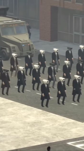 토일렛(변기)는 도시의 사람들을 점차 장악하며 토일렛의 세력을 키우는데요. 이때 토일렛에 대항하여 사람을 보호하는 역할을 하는 것이 카메라맨입니다.