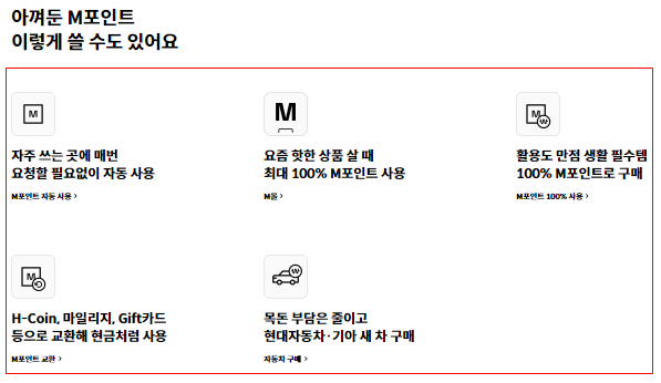 현대카드를 사용하시는 많은 분들이 가장 사랑하는 부분이 바로 m포인트가 아닐까 싶은데요. 이 M포인트는 카드를 잘 이용하시는 분들의 경우 많이 쌓이셨을 거에요. 그런데 내 포인트가 얼마나 쌓여있는지 잘 모르시거나 어디에 사용해야하는지, 활용방법을 모르시는 경우를 위해 준비했어요. 사용방법, 사용처, m포인트를 현금처럼 사용하는 방법에 대해 알아볼게요.