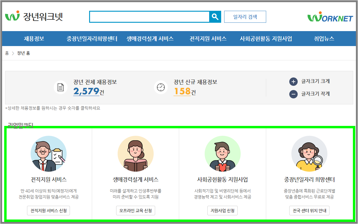 중장년 일자리 희망센터 홈페이지: https://www.work.go.kr/